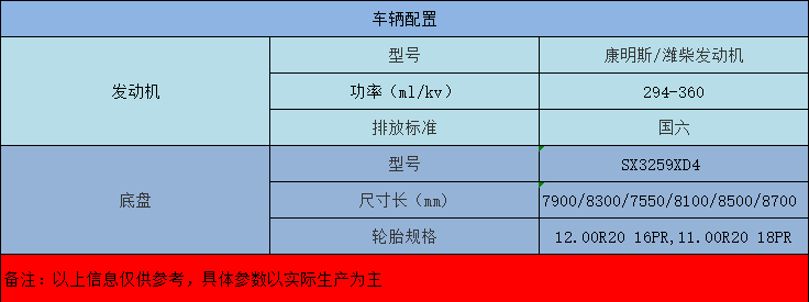濰柴發(fā)動機,陜齒變速箱,7-9T前橋,13-16T后橋