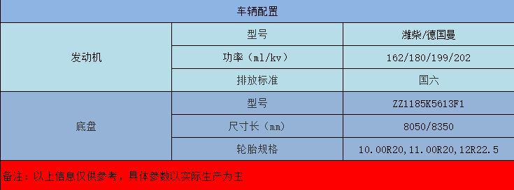 重汽發(fā)動(dòng)機(jī),十檔變速箱,7T前橋,16T后橋。