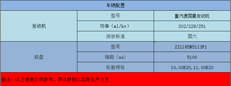 重汽德國曼發(fā)動機(jī),HOWO變速箱,5-7T前橋,7-16T后橋