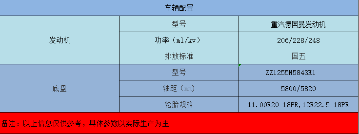 重汽德國曼發(fā)動機(jī),HOWO變速箱,5-7T前橋,7-16T后橋