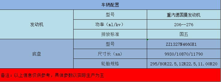 重汽德國曼發(fā)動(dòng)機(jī),7T-9T前橋,13T-16T后橋。