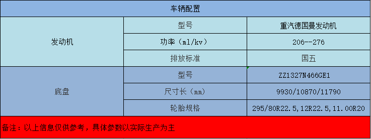 重汽德國曼發(fā)動機,7T-9T前橋,13T-16T后橋。